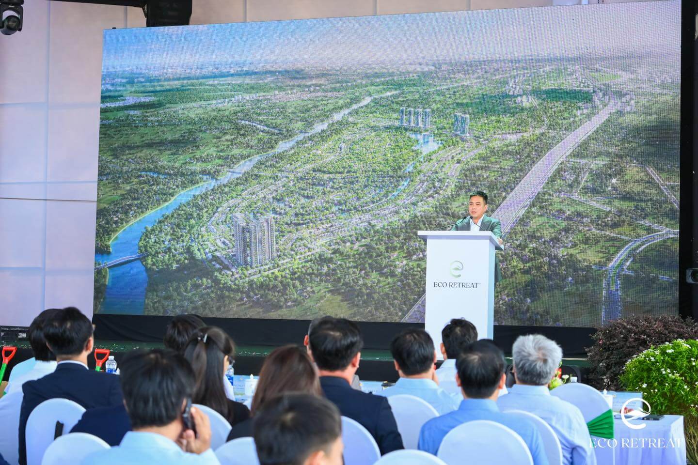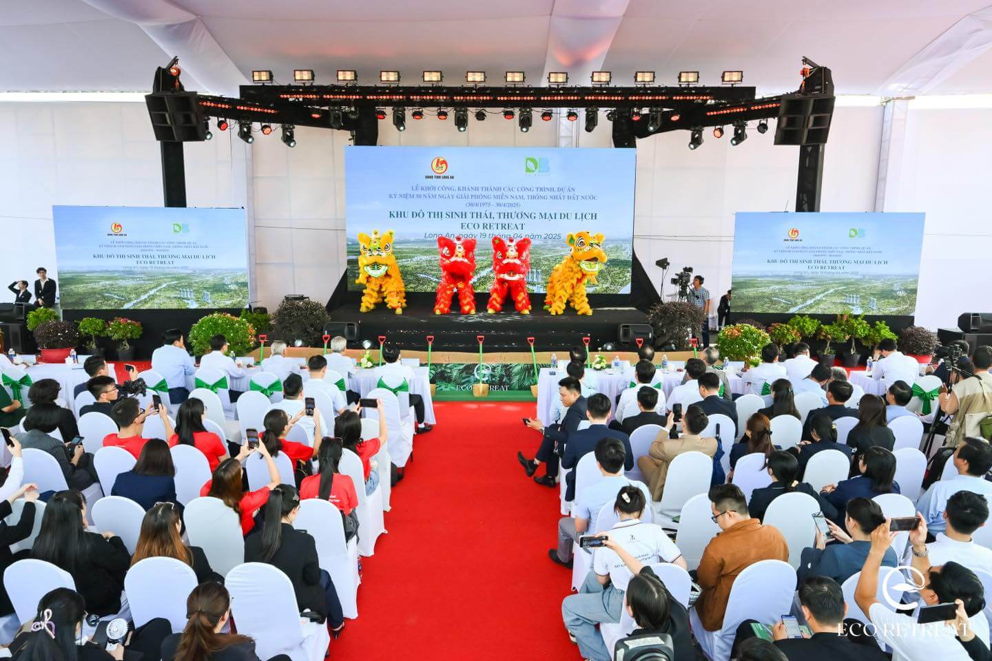 Buổi lễ khởi công diễn ra trang trọng và hứng khởi với sự hiện diện của lãnh đạo địa phương, đại diện NSL Ecopark – đơn vị phát triển dự án, cùng các đối tác chiến lược. Sự kiện thu hút sự quan tâm lớn từ giới đầu tư và truyền thông, khẳng định tầm vóc của Eco Retreat trong chiến lược phát triển đô thị xanh tại phía Tây TP.HCM.